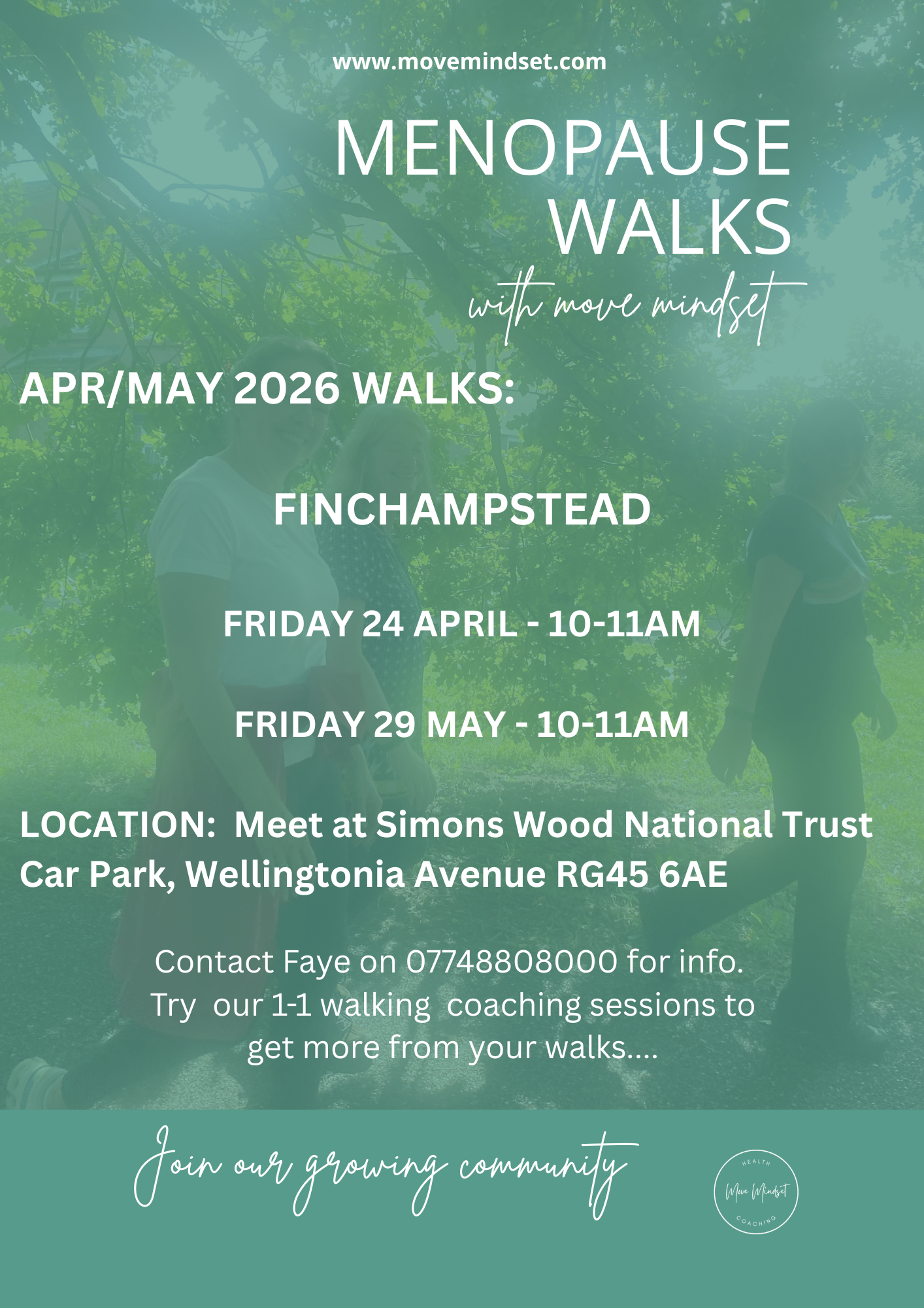 Menopause Walks can also support your organisation to encourage regular movement and connection through organised walks. Please contact Move Mindset for more details.